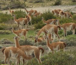 File:Guanacos (Lama guanicoe) Leona Amarga.jpg|Watching for danger in Torres del Paine in Patagonia | |||