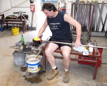 Working with large or complex pieces requires a team of several glassworkers, in a complex choreography of precisely timed movements. This practical requirement has encouraged collaboration among glass artists, in both semi-permanent and temporary working groups.