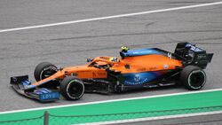 Norris equalled his then-highest grid position at the Styrian Grand Prix in Austria, starting third after Bottas was issued with a grid penalty. He finished fifth for the third consecutive race. He bettered this qualifying position at the following weekend's Austrian Grand Prix, starting in second place after setting a time 0.048 seconds behind pole-sitter Max Verstappen. Norris received a penalty during the race after being judged to have forced Sergio Pérez off the track. He finished the race third to claim his third podium of the season. He set the sixth fastest time in Friday qualifying at the British Grand Prix, before finishing fifth in the new-format sprint qualifying and fourth in the Grand Prix. This result moved him up to third place in the drivers' championship. He qualified sixth for the Hungarian Grand Prix. He improved to third place by the first corner but was hit from behind by Bottas, causing him to collide with Verstappen. Norris retired from the race two laps later due to heavy damage. At the Italian Grand Prix, Norris finished fourth in sprint qualifying, which became third on the grid for the race as Bottas incurred an engine penalty. Norris finished the race second behind teammate Ricciardo, scoring his fourth podium of the season and securing McLaren's first one-two finish since the 2010 Canadian Grand Prix.